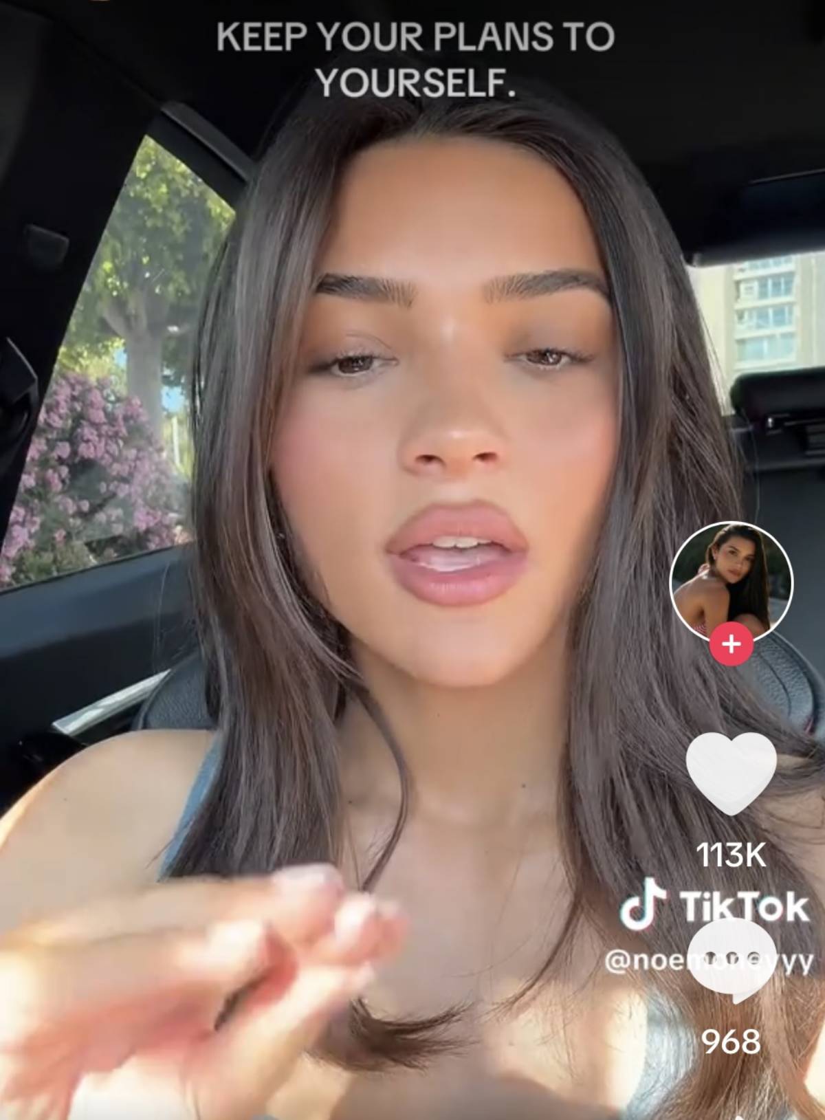 Em outro vídeo, a tiktoker @mandanazarfhami diz: “Não importa o que esteja acontecendo na sua vida: aquele emprego dos sonhos, aquela cidade para onde você quer se mudar, aquela pessoa dos sonhos, aquela vida dos sonhos, qualquer coisa dos sonhos. Literalmente, guarde para si até que esteja feito”.
